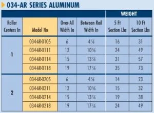 Rollers: 3/4”, 20 Ga. Galv./Alum. ©Axles: 1/4” Round, Spring Loaded